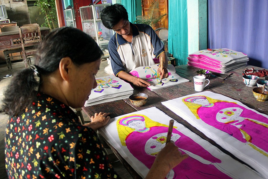 Hue boasts paintings of Sinh village. Sinh or Lai An village is located in Phu Vang district, 9km east of Hue city. If Dong Ho folk paintings reflect the down-to-earth daily life of northern delta residents, Sinh village paintings are used for belief and worship purposes.